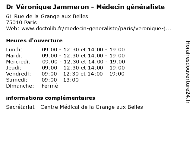 | Mercredi | 09:00-12:30 et 14:00-19:00 |