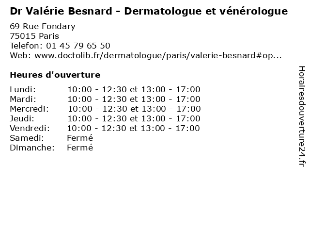 | Lundi | 10:00-12:30 et 13:00-17:00 |