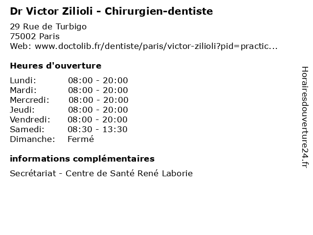 1 Dr Maylis Zilioli - Chirurgien-dentiste (Distance: 0,00 km) 29 Rue de Turbigo, 75002 Paris chirurgie, chirurgien, dentaire, dentiste, dr, maylis, zilioli 2 Dr Maylis Zilioli - Chirurgien-dentiste (Distance: 0,22 km) 29 Rue de Turbigo, 75002 Paris chirurgien, consultation, dentiste, docteur, dr, maylis, med, médecin, médecine, secrétariat, traitement, zilioli 3 Dr Maylis Zilioli - Chirurgien-dentiste (Distance: 0,22 km) 29 Rue de Turbigo, 75002 Paris chirurgien, consultation, dentiste, docteur, dr, maylis, med, médecin, médecine, secrétariat, traitement, zilioli 4 Hugo & Victor (Distance: 1,35 km) 7 rue Gomboust, 75001 Paris breakfast, cakes and tarts, chocolate bars, chocolates, hugo, victor 5 Hotel Victor Masse (Distance: 2,10 km) 32 Rue Victor Masse, 75009 Paris bar, chambres, hotel, masse, restaurant, service, victor 6 Hugo & Victor (Distance: 2,24 km) 40 bd Raspail, 75007 Paris breakfast, cakes and tarts, chocolate bars, chocolates, hugo, victor |