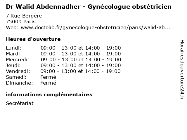 | Lundi | 09:00-13:00 et 14:00-19:00 |