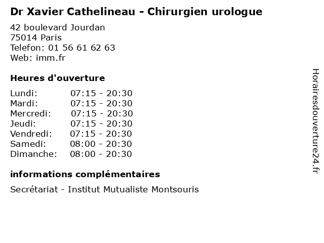 1 Dr. Eric Barret - Chirurgien urologue (Distance: 0,00 km) 42 boulevard Jourdan, 75014 Paris barret, chirurgien, consultation, docteur, dr, dr., eric, med, médecin, traitement, urologue 2 Dr Constance Michel - Chirurgien urologue (Distance: 0,82 km) 5 Rue Amaury Duval, 92120 Montrouge chirurgien, constance, consultation, docteur, dr, med, michel, médecin, médecine, traitement, urologue 3 Dr Dorian Legraverend - Chirurgien urologue (Distance: 1,46 km) 8 Place de l'Abbé Georges Hénocque, 75013 Paris chirurgien, consultation, docteur, dorian, dr, legraverend, med, médecin, médecine, secrétariat, traitement, urologue 4 Dr François Meyer - Chirurgien urologue (Distance: 1,48 km) 8 Place de l'Abbé Georges Hénocque, 75013 Paris chirurgien, consultation, docteur, dr, françois, med, meyer, médecin, médecine, secrétariat, traitement, urologue 5 Dr Xavier Hurtes - Chirurgien urologue (Distance: 1,48 km) 8 Place de l'Abbé Georges Hénocque, 75013 Paris chirurgien, consultation, docteur, dr, hurtes, med, médecin, médecine, secrétariat, traitement, urologue, xavier 6 Dr Paul-Louis Evrard - Chirurgien urologue (Distance: 1,48 km) 8 Place de l'Abbé Georges Hénocque, 75013 Paris chirurgien, consultation, docteur, dr, evrard, louis, med, médecin, médecine, paul, secrétariat, traitement, urologue |