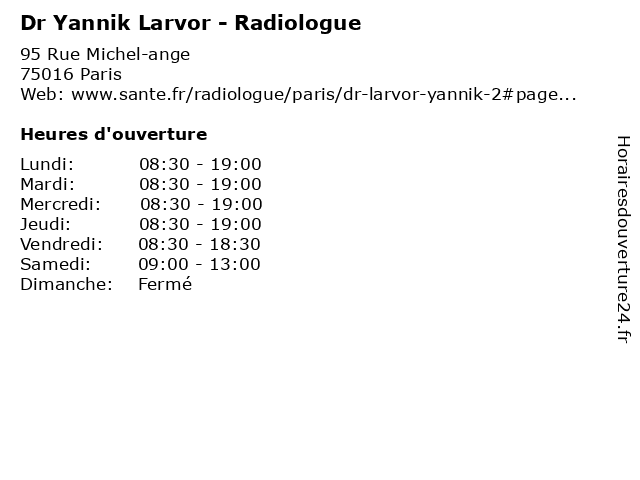 1 Dr Yannik Larvor - Radiologue (Distance: 0,00 km) 95 Rue Michel Ange, 75016 Paris dr, larvor, médecin, médecine, médical, pharmaceutique, radiologue, secretariat, traitement, yannik 2 Dr Yannik Larvor - Radiologue (Distance: 0,63 km) 46 Rue Chardon Lagache, 75016 Paris 16, centre, diagnostique, dr, imagerie, larvor, paris, radiologie, radiologue, thérapeutique, yannik 3 Dr Yannik Larvor - Radiologue (Distance: 2,65 km) 74 Avenue Paul Doumer, 75116 Paris dr, larvor, médecin, médecine, médical, pharmaceutique, radiologue, secretariat, traitement, yannik 4 Dr Yannik Larvor - Radiologue (Distance: 2,65 km) 74 Avenue Paul Doumer, 75016 Paris diagnostique, dr, imagerie, larvor, radiologie, radiologue, thérapeutique, yannik 5 Dr Yannik Larvor - Radiologue (Distance: 2,66 km) 74 Avenue Paul Doumer, 75016 Paris consultation, docteur, dr, larvor, med, médecin, radiologue, traitement, yannik 6 Sonia Larvor - Ostéopathe (Distance: 17,00 km) 4 place Francis Poulenc, 78180 Montigny-le-Bretonneux bien-être, larvor, ostéopathe, santé, services, sonia |