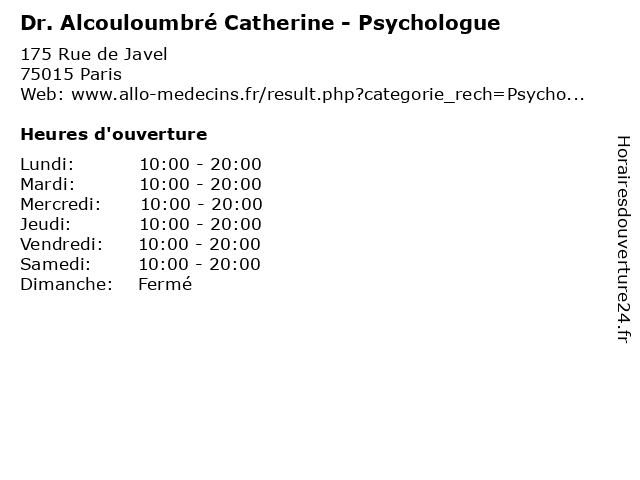 Termes de recherche pour Dr. Alcouloumbré Catherine - Psychologue:catherine, santé, docteur, dr., médecins, psychologue, alcouloumbré |