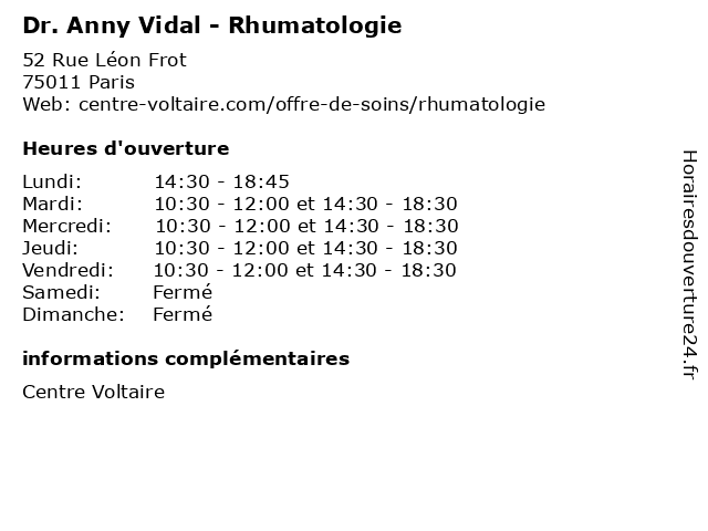| Vendredi | 10:30-12:00 et 14:30-18:30 |