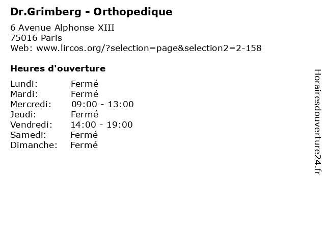 1 Dr. Drain - Orthopedique (Distance: 0,00 km) 6 Avenue Alphonse XIII, 75016 Paris docteur, dr., drain, medecins, orthopedique, sante 2 Dr.Duranthon - Orthopedique (Distance: 0,00 km) 6 Avenue Alphonse XIII, 75016 Paris docteur, dr.duranthon, medecins, orthopedique, sante 3 Dr.Schmider - Orthopedique (Distance: 0,00 km) 6 Avenue Alphonse XIII, 75016 Paris docteur, dr.schmider, medecins, orthopedique, sante 4 Dr Jean Grimberg - Chirurgien orthopédiste (Distance: 1,22 km) 21 rue de Rémusat, 75016 Paris chirurgien, consultation, docteur, dr, grimberg, jean, med, médecin, médecine, orthopédiste, traitement 5 Dr Jean Grimberg - Chirurgien orthopédiste et traumatologue (Distance: 1,91 km) 6 Square Jouvenet, 75016 Paris chirurgien, consultation, docteur, dr, et, grimberg, jean, med, médecin, orthopédiste, traitement, traumatologue 6 Dr. Alina Grimberg - orthdontiste (Distance: 3,42 km) 6 Rue de Vanves, 92130 Issy-les-Moulineaux alina, alina grimberg, cabinet d'orthodontie, clamart, dentiste, docteur, dr., dr. grimberg, grimberg, issy les moulineaux, malakof, medecins, orthdontiste, orthodontie, orthodontiste, santé, spécialiste qualifiée en orthopédie dento faciale, vanves |