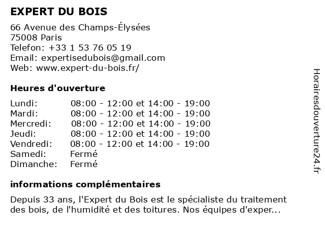 | Mercredi | 08:00-12:00 et 14:00-19:00 |