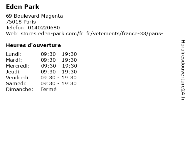 1 Eden Park (Distance: 1,75 km) 40 boulevard Haussmann, 75009 Paris accessoires, boutique, eden, habillement, mode, park, vetements 2 Eden Park (Distance: 1,84 km) 71-71 Bis Boulevard Barbès, 75018 Paris accessoires, eden, femme, homme, mode, park, vêtements 3 Eden Park (Distance: 1,96 km) 52 Rue de Rivoli, 75189 Paris accessoires, eden, femme, homme, mode, park, vêtements 4 Eden Park (Distance: 4,56 km) 192-194 rue de Courcelles, 75017 Paris accessoires, boutique, eden, habillement, mode, park, vetement 5 Eden Park (Distance: 5,56 km) 30 avenue D'Italie, 75013 Paris accessoires, eden, femme, homme, mode, park, vêtements 6 Eden Park (Distance: 5,91 km) 110 avenue du General Leclerc, 75014 Paris accessoires, eden, femme, homme, mode, park, vêtements |