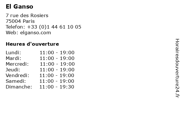 1 El Ganso (Distance: 0,22 km) 19 Rue des Francs Bourgeois, 75004 Paris clothings, dresses, el, ganso, stores 4 El Ganso (Distance: 2,76 km) 40 Boulevard Haussmann, 75009 Paris clothings, dresses, el, ganso, stores 5 El Ganso (Distance: 2,79 km) 7 Boulevard De La Madeleine, 75001 Paris boutique, el, el ganso, femme, ganso, homme, magasin 6 |