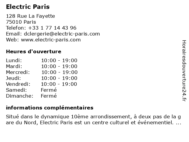 1 Pure Electric (Distance: 1,30 km) 94 boulevard de Sébastopol, 75003 Paris boutique, electric, entretien, pure, réparation, trottinettes, vélo, électrique, équipements 2 EBS Electric Business Services (Distance: 2,60 km) 10 rue Cheroy, 75017 Paris business, depannage, e.b.s, ebs, electric, electriciens, electriques, services, électricite 3 Pure Electric (Distance: 3,04 km) 110 boulevard Saint-Germain, 75006 Paris boutique, electric, entretien, pure, réparation, trottinettes, vélo, électrique, équipements 4 Urban Electric Solutions (Distance: 3,87 km) 8 Rue Des Bles, 93210 La Plaine St Denis electric, motos, solutions, urban, vente 5 Electric Motorcycles by ats (Distance: 4,20 km) 12 rue des Boulets, 75011 Paris ats, by, electric, moto electrique, motorcycles, motos, services 6 Momentum Electric (Distance: 5,90 km) 64 Rue d'Alésia, 75014 Paris electric, momentum, velo assistance electrique, velo electrique, velo electrique paris, velo electrique pas cher |