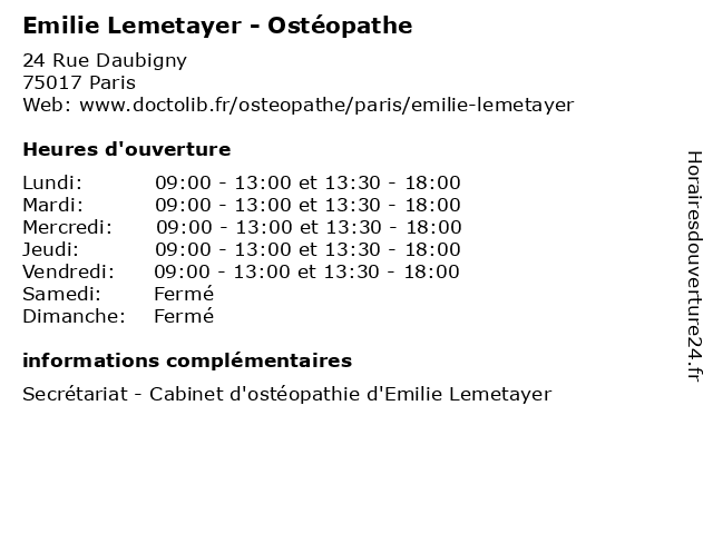 Lundi | 09:00-13:00 et 13:30-18:00 |