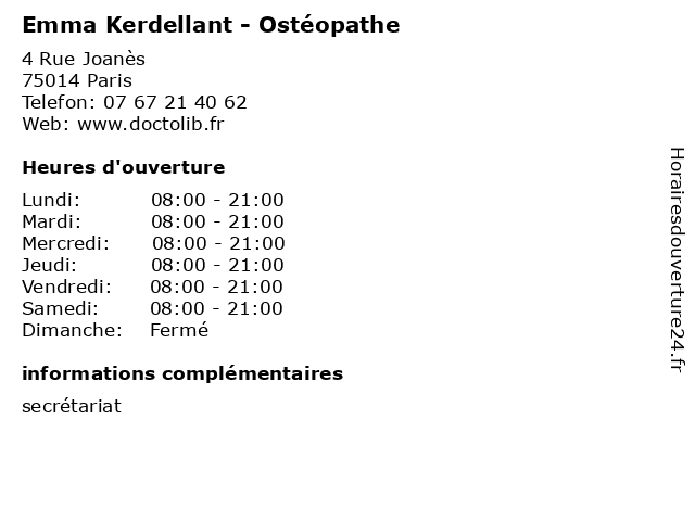 1 Emma Levillair - Psychologue (Distance: 0,88 km) 6 Rue de la Saône, 75014 Paris cabinets, emma, levillair, médecins, psychologue, secrétariat, thérapies 2 Dr Emma Dupont - Gynécologue obstétricien (Distance: 1,51 km) 4 Rue du Docteur Roux, 75015 Paris consultation, docteur, dr, dupont, emma, gynécologue, med, médecin, médecine, obstétricien, secrétariat, traitement 3 Emma Gardere - Masseur-kinésithérapeute (Distance: 1,68 km) 7 Rue Falguière, 75015 Paris emma, gardere, kiné, kinésithérapeute, masseur, rééducation, soin 4 Dr. Hervé Emma - Ostéopathe (Distance: 1,86 km) 12 Rue Ferdinand Fabre, 75015 Paris docteur, dr., emma, hervé, medecins, ostéopathe, sante 5 Dr. Joux Emma - Psychologue (Distance: 2,09 km) 77 Rue Vergiaud, 75013 Paris docteur, dr., emma, joux, medecins, psychologue, sante 6 Dr Emma de Ferrier-sabbah - Chirurgien-dentiste (Distance: 2,72 km) 64 Avenue des Gobelins, 75013 Paris chirurgien, chirurgien-dentiste, de, dentiste, dr, emma, ferrier, médecins, médicaments, sabbah, santé, secrétariat, spécialiste  |