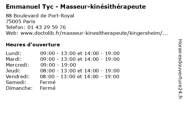 | Vendredi | 08:00-13:00 et 14:00-19:00 |