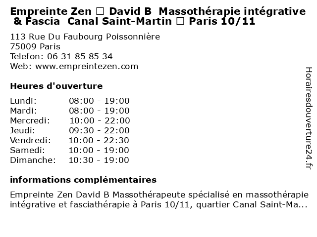 Termes de recherche pour Empreinte Zen – David B Massothérapie intégrative & Fascia Canal Saint-Martin – Paris 10/11:saint, martin, paris, david, zen, empreinte, canal, integrative, fascia, médecine alternative, massothérapie, clinique médicale, médecine holistique, station de cure, thérapie physique, 10/11 |