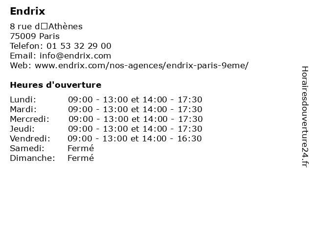 | Jeudi | 09:00-13:00 et 14:00-17:30 |