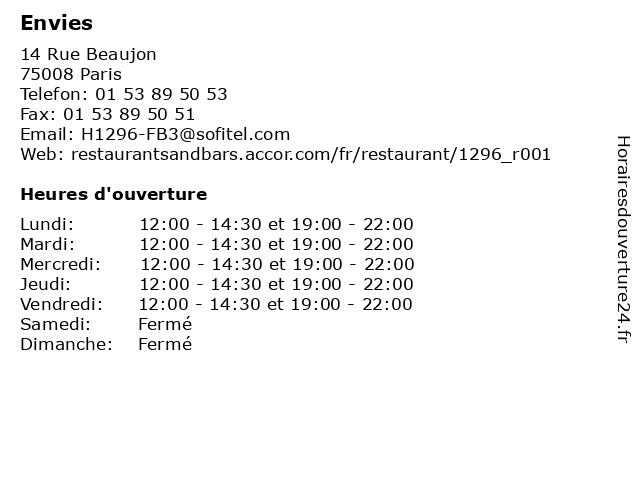| Vendredi | 12:00-14:30 et 19:00-22:00 |
