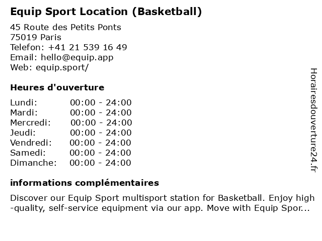 1 Equip Sport Location (Basketball) (Distance: 1,73 km) Rue Curial, 75019 Paris basketball, decathlon, equip, equip sport, equipment, equipsport, location, sport 2 Equip Sport Location (Basketball) (Distance: 2,27 km) 46 Rue Olivier Métra, 75020 Paris basketball, decathlon, equip, equip sport, equipment, equipsport, location, sport 3 Equip Sport Location (Basketball) (Distance: 2,84 km) Rue de la Grange aux Belles, 75010 Paris basketball, decathlon, equip, equip sport, equipment, equipsport, location, sport 4 Equip Sport Location (Basketball) (Distance: 2,85 km) 18 Rue Georg Friedrich Haendel, 75010 Paris basketball, decathlon, equip, equip sport, equipment, equipsport, location, sport 5 Equip Sport Location (Basketball) (Distance: 2,99 km) 138-146 Quai de Jemmapes, 75010 Paris basketball, decathlon, equip, equip sport, equipment, equipsport, location, sport 6 Equip Sport Location (Basketball) (Distance: 3,25 km) 21 Rue Louis Delgrès, 75015 Paris basketball, decathlon, equip, equip sport, equipment, equipsport, location, sport |