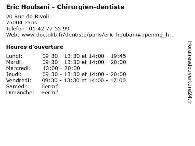 | Lundi | 09:30-13:30 et 14:00-19:45 |