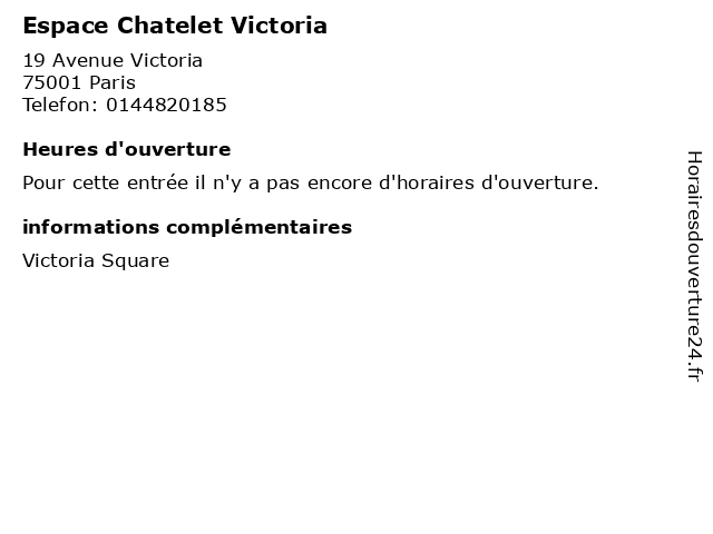 | Appeler Espace Chatelet Victoria | |