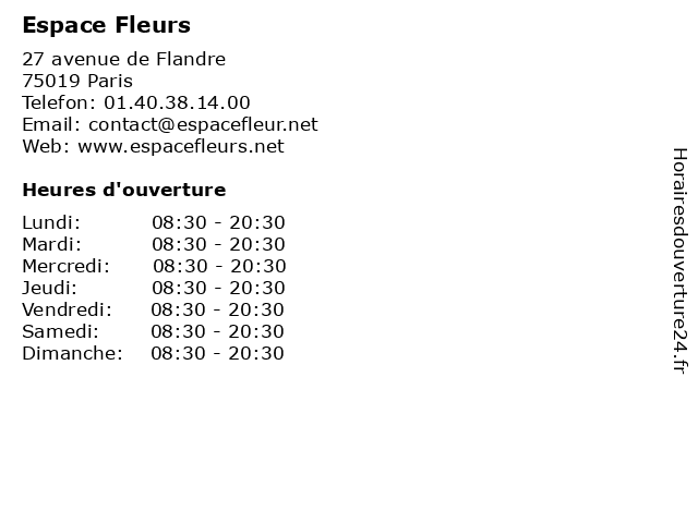 1 Espace Fleurs (Distance: 1,16 km) 112 rue de Maubeuge, 75010 Paris espace, fleuriste, fleurs, gare, services, station 2 Boucherie Espace Viande (Distance: 0,12 km) 16 Avenue De Flandre, 75019 Paris boucher, boucherie, charcuterie, espace, traiteur, viande, épicerie 3 Espace Hilti (Distance: 0,30 km) 220 Boulevard de la Villette, 75019 Paris clients, equipements, espace, hilti, machinerie, service 4 Crèche Associative Espace Riquet (Distance: 0,37 km) 51-53 Rue Riquet, 75019 Paris accueil, associative, creche, crèche, enfants, espace, garderie, riquet 5 La Boîte à Fleurs (Distance: 0,46 km) 60 Avenue Jean Jaurès, 75019 Paris boîte, fleurs, jardinage, la, magasins, plantes 6 Monceau Fleurs (Distance: 0,54 km) 225 Rue Lafayette, 75010 Paris bouquet, cadeaux, fleur, fleuriste, fleurs, les deuil, mariage, monceau, plante, un service |