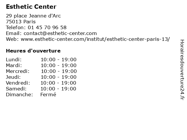 1 Esthetic Center (Distance: 2,79 km) 3 Place des Marseillais, 94220 Charenton-le-Pont beauté, center, esthetic, parfumeries 2 Esthetic Center (Distance: 3,73 km) 5 Rue des Déchargeurs, 75001 Paris beauté, center, esthetic, femmes, hommes, institut, soins corps, soins visage, épilation 3 Esthetic Center (Distance: 5,35 km) 81-85 Avenue du Général De Gaulle, 94240 L'Haÿ-les-Roses beaute, center, esthetic, produit 4 Esthetic Center (Distance: 6,46 km) 15 Rue des Lumières, 93100 Montreuil accessoires, cafe, center, deco, enfants, esthetic, femme, mode, restaurant, shopping 5 Esthetic Center (Distance: 6,50 km) - Place Jean Jaures, 93100 Montreuil beauté, center, esthetic, parfumeries 6 |