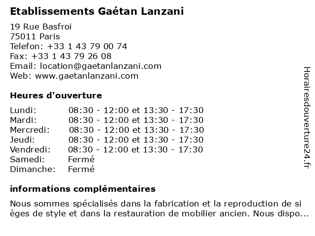 | Lundi | 08:30-12:00 et 13:30-17:30 |