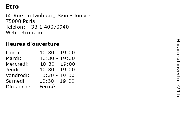 Lundi | 10:30-19:00 |