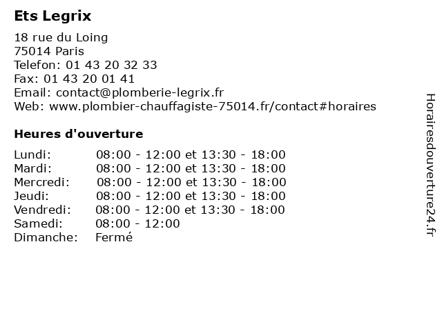 | Lundi | 08:00-12:00 et 13:30-18:00 |