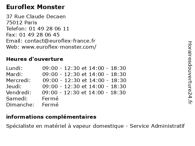| Lundi | 09:00-12:30 et 14:00-18:30 |