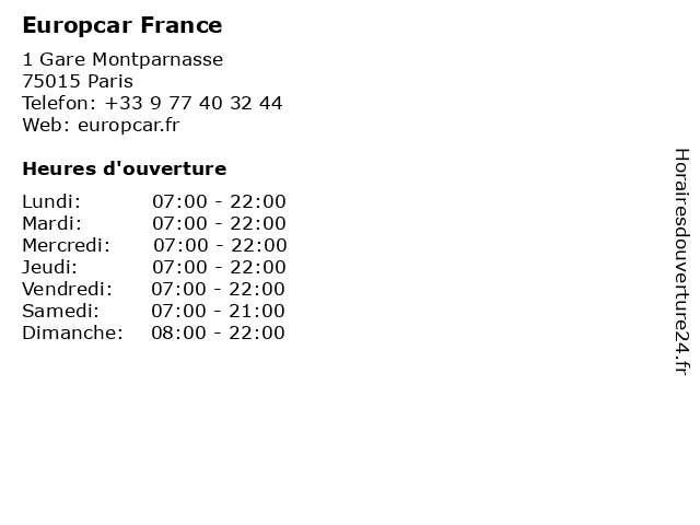 1 Europcar France (Distance: 4,33 km) 8 Avenue Foch, 75016 Paris business, car, europcar, france, rentals, services 2 Europcar (Distance: 0,45 km) n/a rue du cdt mouchotte, 75015 Paris europcar, location de voitures, location de voitures de luxe, location de véhicules utilitaires, véhicules 3 Europcar Paris Montparnasse Gare (Distance: 0,47 km) Gare montparnasse, 75015 Paris europcar, gare, montparnasse, paris 4 Europcar Paris Porte De Chatillon (Distance: 1,73 km) 21 Avenue de la porte de chatillon, 75014 Paris chatillon, de, europcar, paris, porte 5 Europcar (Distance: 2,17 km) 17-21 boulevard romain rolland, 75014 Paris europcar, location de voitures, location de voitures de luxe, location de véhicules utilitaires, véhicules 6 Europcar (Distance: 4,32 km) n/a Gare saint lazare, 75008 Paris europcar, location de voitures, location de voitures de luxe, location de véhicules utilitaires, véhicules |