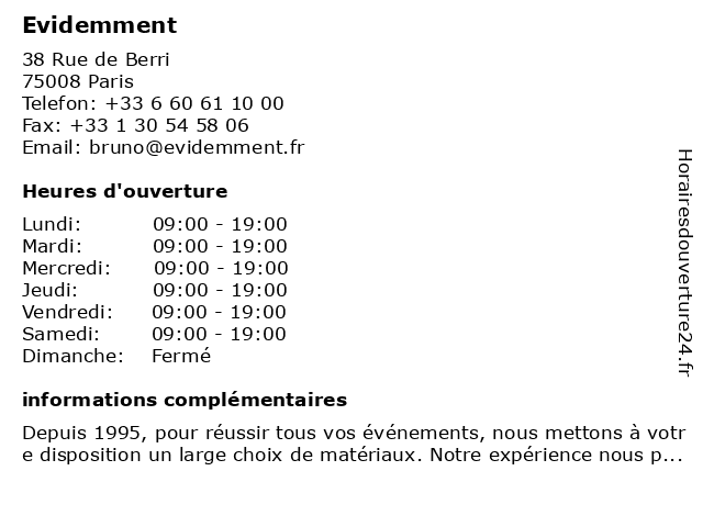 Horaires d'ouverture |