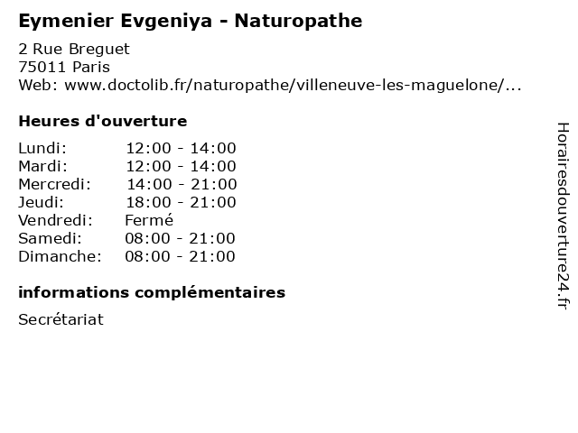 | Dimanche | 08:00-21:00 |