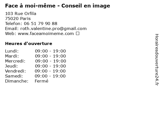 | Lundi | 09:00-19:00 |