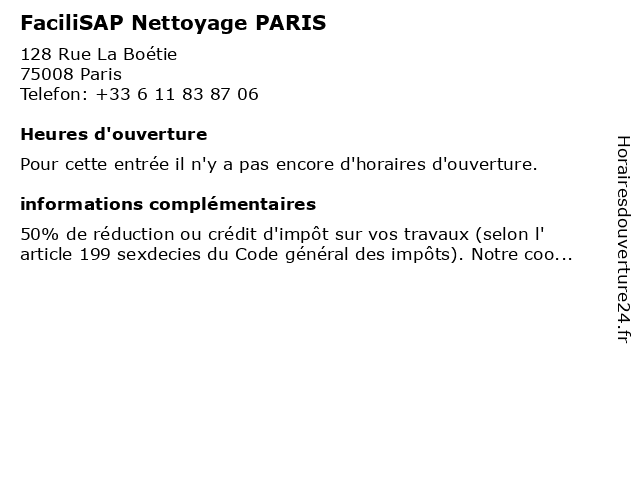 | Appeler FaciliSAP Nettoyage PARIS | |