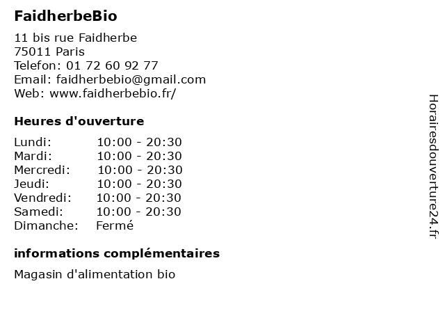| Lundi | 10:00-20:30 |