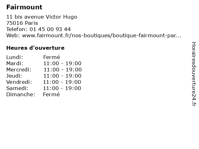 | Vendredi | 11:00-19:00 |