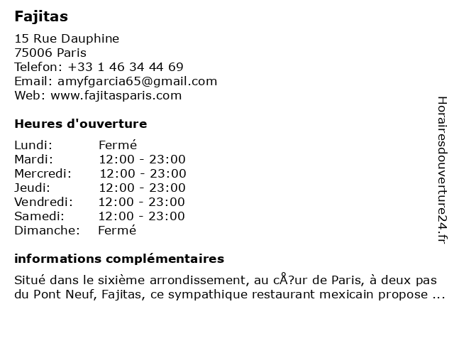 | Vendredi | 12:00-23:00 |