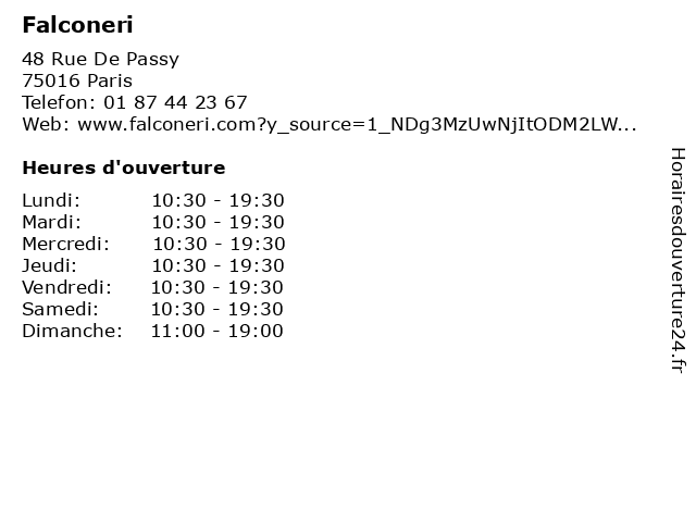 1 Falconeri (Distance: 2,59 km) 6 Avenue Des Ternes, 75017 Paris falconeri, magasin de vêtements pour femmes, magasin de vêtements pour hommes 2 Falconeri (Distance: 3,70 km) 10 Rue Tronchet, 75008 Paris falconeri, magasin de vêtements pour femmes, magasin de vêtements pour hommes 3 Falconeri (Distance: 3,74 km) 56 Rue Du Four, 75006 Paris falconeri, magasin de vêtements pour femmes, magasin de vêtements pour hommes 4 Falconeri (Distance: 5,06 km) 92 Rue De Rivoli, 75004 Paris falconeri, magasin de vêtements pour femmes, magasin de vêtements pour hommes 5 Falconeri (Distance: 5,70 km) 34 Rue Vieille Du Temple, 75004 Paris falconeri, magasin de vêtements pour femmes, magasin de vêtements pour hommes 6 Falconeri (Distance: 36,32 km) 14 Cours Du Danube, 77700 Serris falconeri, magasin de vêtements pour femmes, magasin de vêtements pour hommes |