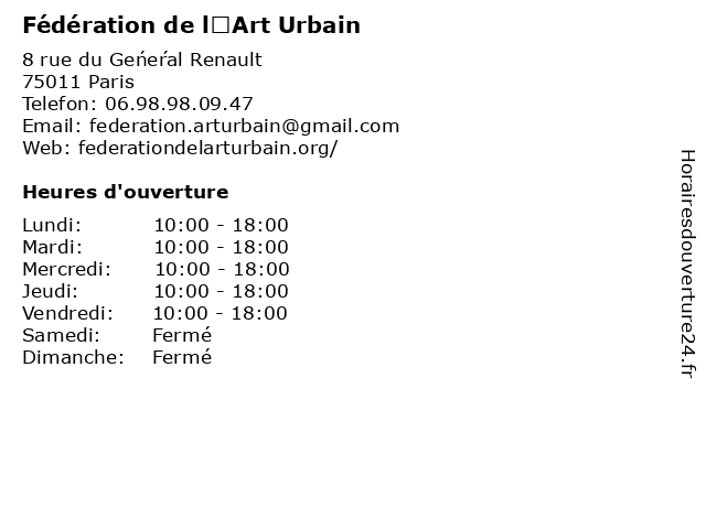 | Vendredi | 10:00-18:00 |
