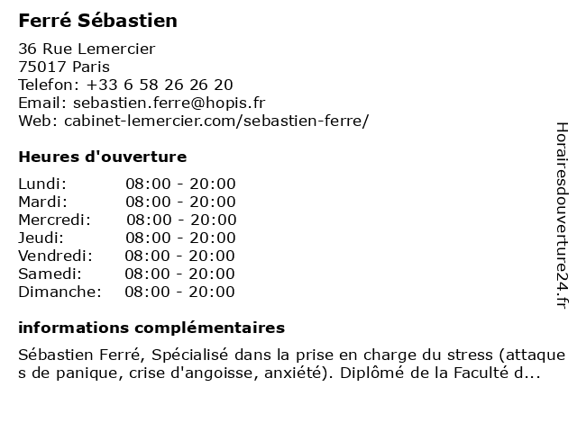 | Lundi | 08:00-20:00 |