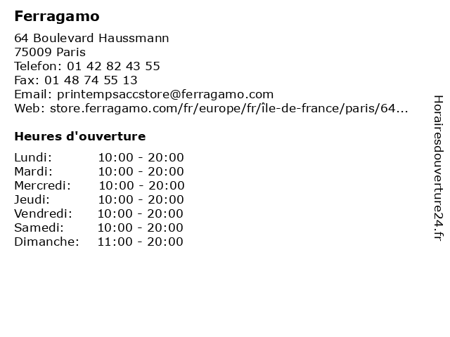 1 Ferragamo (Distance: 0,06 km) 61 Rue De Caumartin, 75009 Paris bijouterie, ferragamo, magasin de lunettes de soleil, magasin de montres, magasin de vêtements pour femmes, magasin de vêtements pour hommes, magasin d’accessoires de mode, maroquinerie, mode, parfumerie 2 Ferragamo (Distance: 0,09 km) 64 Boulevard Haussmann, 75009 Paris bijouterie, ferragamo, magasin de lunettes de soleil, magasin de montres, magasin de vêtements pour femmes, magasin de vêtements pour hommes, magasin d’accessoires de mode, maroquinerie, mode, parfumerie 3 Ferragamo (Distance: 0,20 km) 48 Boulevard Haussmann, 75009 PARIS bijouterie, ferragamo, magasin de lunettes de soleil, magasin de montres, magasin de vêtements pour femmes, magasin de vêtements pour hommes, magasin d’accessoires de mode, maroquinerie, mode, parfumerie 4 Ferragamo (Distance: 0,27 km) 40 Boulevard Haussmann, 75009 PARIS bijouterie, ferragamo, magasin de lunettes de soleil, magasin de montres, magasin de vêtements pour femmes, magasin de vêtements pour hommes, magasin d’accessoires de mode, maroquinerie, mode, parfumerie 5 Ferragamo (Distance: 1,68 km) 45 Avenue Montaigne, 75008 Paris bijouterie, ferragamo, magasin de lunettes de soleil, magasin de montres, magasin de vêtements pour femmes, magasin de vêtements pour hommes, magasin d’accessoires de mode, maroquinerie, mode, parfumerie 6 Ferragamo (Distance: 2,54 km) 24 Rue De Sèvres, 75007 Paris bijouterie, ferragamo, magasin de lunettes de soleil, magasin de montres, magasin de vêtements pour femmes, magasin de vêtements pour hommes, magasin d’accessoires de mode, maroquinerie, mode, parfumerie |