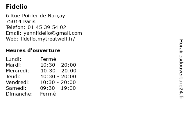 | Lundi | Fermé |