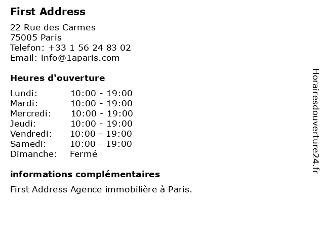 1 My Address In Paris (Distance: 1,54 km) 47 Rue Berger, 75001 Paris address, agents, directeurs, immobiliers, in, my, paris 2 First Optic (Distance: 2,08 km) 19 Rue Daguerre, 75014 Paris care, clinic, doctor, first, health, optic, opticiens, optique, vision 3 Always First Travel - Chen Voyages (Distance: 2,57 km) 173 rue de Tolbiac, 75013 Paris agence, always, chen, circuits, first, hôtel, réservations, séjours, travel, vacances, vol, voyages 4 Hotel First (Distance: 3,29 km) 2 Boulevard Garibaldi, 75015 Paris cafe, first, hotel, restaurant, service 5 First (Distance: 3,68 km) 30 Avenue Paul Vaillant Couturier, 94250 Gentilly first, japonais, restaurants, sushi 6 First Up (Distance: 3,80 km) 18 rue Letellier, 75015 Paris cardio, club, first, physique, salles, santé, sport, up |