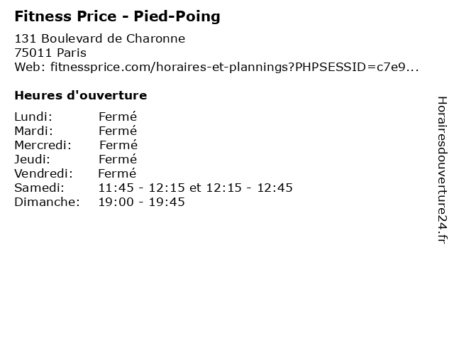 1 Fitness Price - 100 % Abdos (Distance: 0,00 km) 131 Boulevard de Charonne, 75011 Paris 100, abdos, centre, cours, fitness, gym, l'exercice, la santé, le sport, les muscles, price 2 Fitness Price - LIA (Distance: 0,00 km) 131 Boulevard de Charonne, 75011 Paris centre, cours, fitness, gym, l'exercice, la santé, le sport, les muscles, lia, price 3 Fitness Price - Pumping class (Distance: 0,00 km) 131 Boulevard de Charonne, 75011 Paris centre, class, cours, fitness, gym, l'exercice, la santé, le sport, les muscles, price, pumping 4 Fitness Price - Body sculpt (Distance: 0,00 km) 131 Boulevard de Charonne, 75011 Paris body, centre, cours, fitness, gym, l'exercice, la santé, le sport, les muscles, price, sculpt 5 Fitness Price - Boxe anglaise (Distance: 0,00 km) 131 Boulevard de Charonne, 75011 Paris anglaise, boxe, centre, cours, fitness, gym, l'exercice, la santé, le sport, les muscles, price 6 Fitness Price - Yoga (Distance: 0,00 km) 131 Boulevard de Charonne, 75011 Paris centre, cours, fitness, gym, l'exercice, la santé, le sport, les muscles, price, yoga |