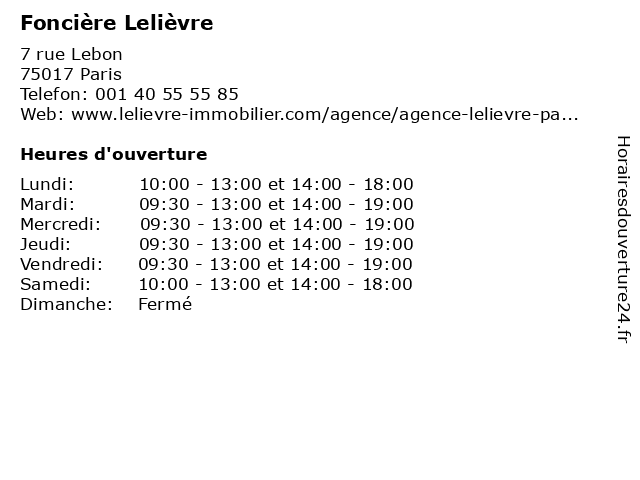 | Lundi | 10:00-13:00 et 14:00-18:00 |