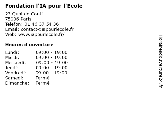 1 Fondation Yves-Cotrel – Institut de France (Distance: 0,07 km) 23 Quai de Conti F, 75006 Paris cotrel, de, fondation, france, institut, pathologie, rachidienne, sociale, solidarité, yves 2 Esquisse - Fournitures pour Artistes (Distance: 0,15 km) 3 Rue des Beaux Arts, 75006 Paris acrylique, artistes, créatifs, esquisse, fournisseur, fournitures, huile, loisirs, pour 3 JAGVI. Rive Gauche, vêtements éco-responsable pour homme Paris (Distance: 0,39 km) 11 Rue Des Saints-pères, 75006 Paris gauche, homme, jagvi., magasin de vêtements de travail, mode, paris, pour, responsable, rive, vêtements, éco 4 Fondation Giacometti (Distance: 0,46 km) 3 bis cour de Rohan, 75006 Paris aide, fondation, giacometti, lutte, solidarité 5 Fondation Hugot du Collège de France (Distance: 0,49 km) 11 rue de l'université, 75007 Paris aide, collège, de, du, fondation, france, hugot, professeurs 6 Fondation Terre Solidaire (Distance: 0,66 km) 8 Rue Jean Lantier, 75001 Paris aide, fondation, lutte, solidaire, solidarité, terre |