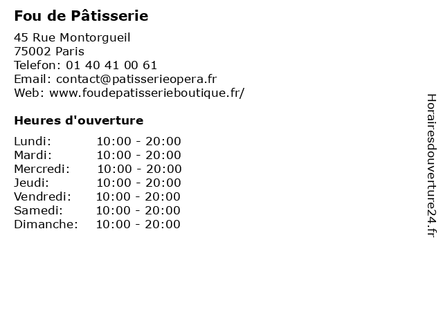 | Lundi | 10:00-20:00 |