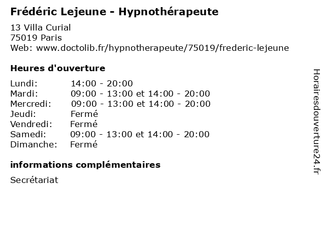 | Mardi | 09:00-13:00 et 14:00-20:00 |
