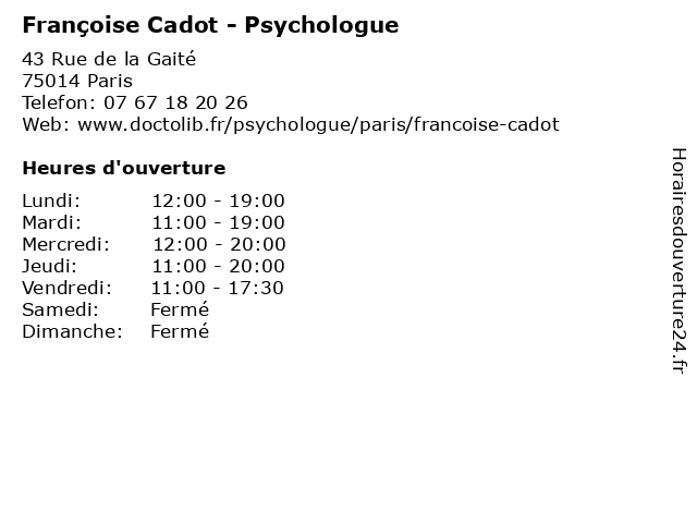 Termes de recherche pour Françoise Cadot - Psychologue:francoise, secretariat, médecins, psychologue, cadot, thérapies, cabinets |