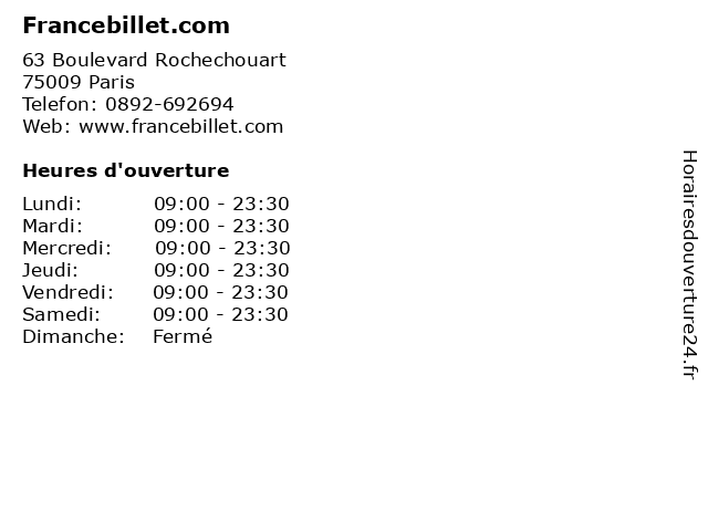 1 Francebillet.com (Distance: 0,45 km) 61-65 Rue De Rochechouard, 75009 Paris concerts, francebillet.com, musees, services, sport, ticket 2 Francebillet.com (Distance: 0,50 km) 33 Rue De Maubeuge, 75009 Paris concerts, francebillet.com, musees, services, sport, ticket 3 Francebillet.com (Distance: 0,63 km) 17 Rue De Clignancourt, 75018 Paris concerts, francebillet.com, musees, services, sport, ticket 4 Francebillet.com (Distance: 2,23 km) 1-7 Rue Pierre Lescot, 75001 Paris concerts, francebillet.com, musees, services, sport, ticket 5 Francebillet.com (Distance: 2,33 km) 29 Rue Du Pont Neuf, 75001 Paris concerts, francebillet.com, musees, services, sport, ticket 6 Francebillet.com (Distance: 3,35 km) 26-30 Avenue des Ternes, 75017 Paris concerts, francebillet.com, musees, services, sport, ticket |