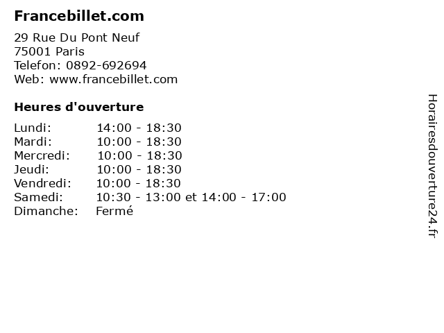 | Mercredi | 10:00-18:30 |